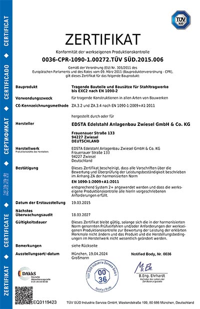 Zert_EN1090-1 WPK_EDSTA Edelstahl Anlagenbau Zwiesel