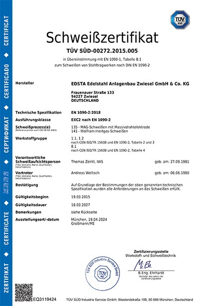 Zert_EN1090-2 schweißen_EDSTA Edelstahl Anlagenbau Zwiesel