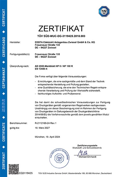 Zert_HP0_EDSTA Edelstahl Anlagenbau Zwiesel